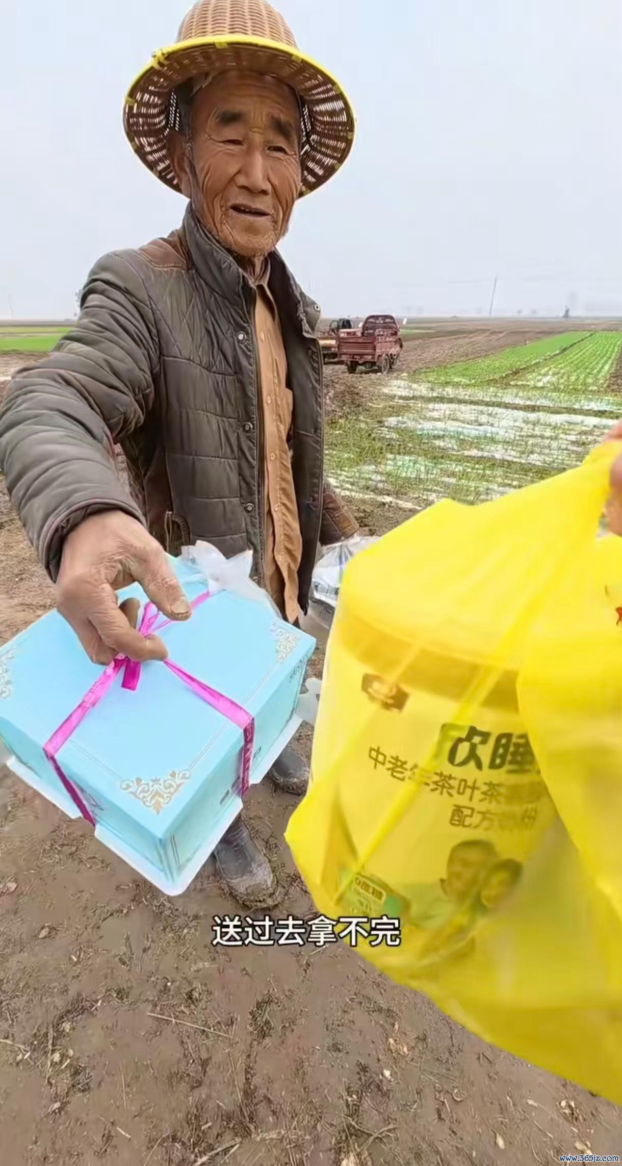 在她拍摄的视频里,六个核桃、烤鸭、烧鸡等像“惊喜盲盒”雷同从后备厢里拿出,镜头一排,是老东谈主们喜气盈盈的笑容。